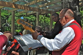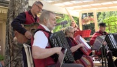 Keuruun Pelimannit 1.7.2018 Avoimen Puuharhan päivänä Kyösti Tolppasen puutarhassa. Kuvat Kyösti Tolppanen.