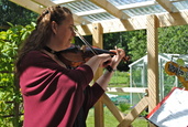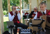 Keuruun Pelimannit 1.7.2018 Avoimen Puuharhan päivänä Kyösti Tolppasen puutarhassa. Kuvat Kyösti Tolppanen.