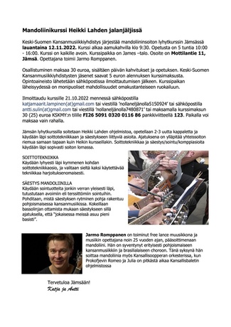 ![]() .. ja jutulla joka ei mahdu... | ![]() KSKMY:n mandoliinikurssi 12.11.2022 |