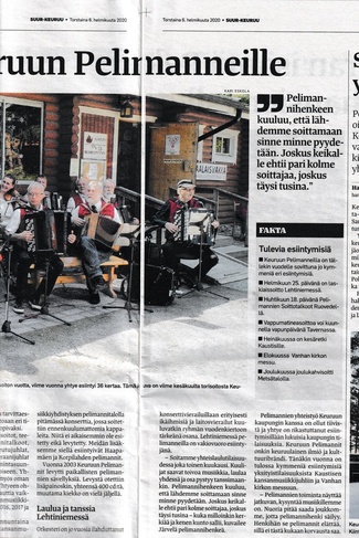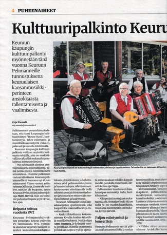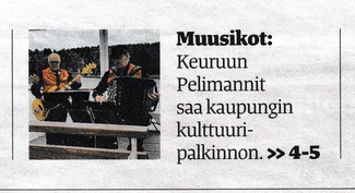 ![]() Keuruun kaupungin kulttuuripalkinto luovutettiin Keuruun Pelimanneille 7.2.2020 | ![]() Suur-Keuruu uutisoi asiasta etusivun yliössä... |